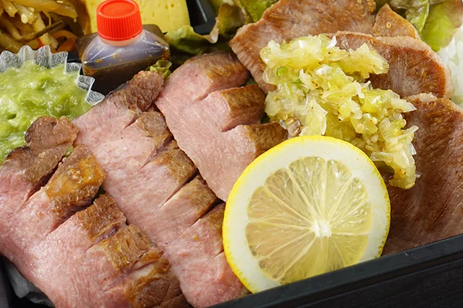 仙台名物の厚切り牛タンと薄切り牛タンを一度で愉しめるお弁当です。